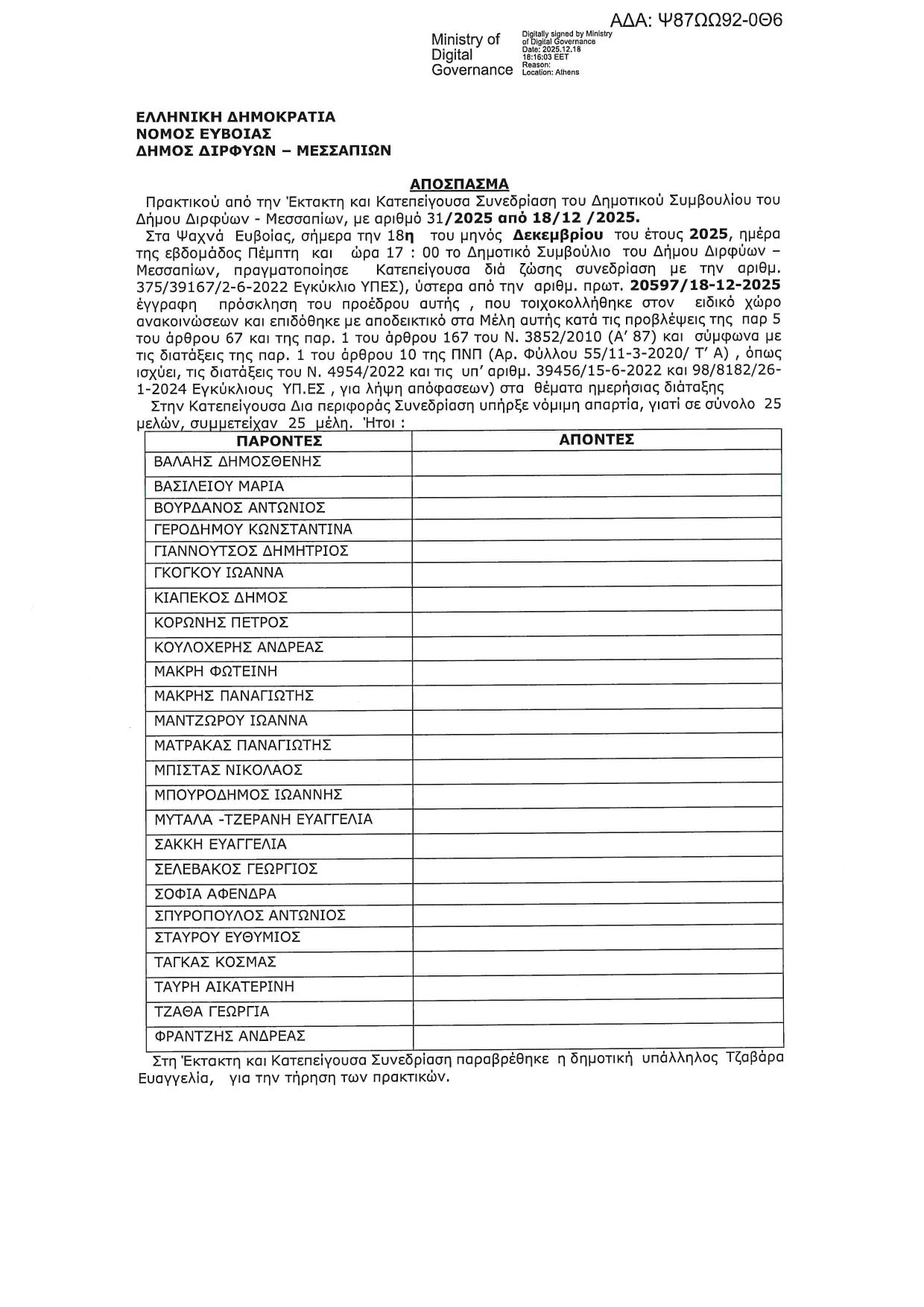 18 Δεκεμβρίου 2025| Blog, Ανακοινώσεις, Δελτία Τύπου, Επικαιρότητα, Προσκλήσεις Δημοτικού Συμβουλίου| Ευαγγελία Τζαβάρα